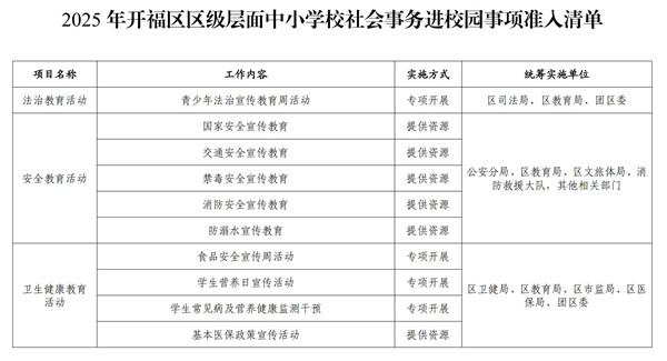 附件:2025年开福区区级层面中小学校社会事务进校园事项准入清单