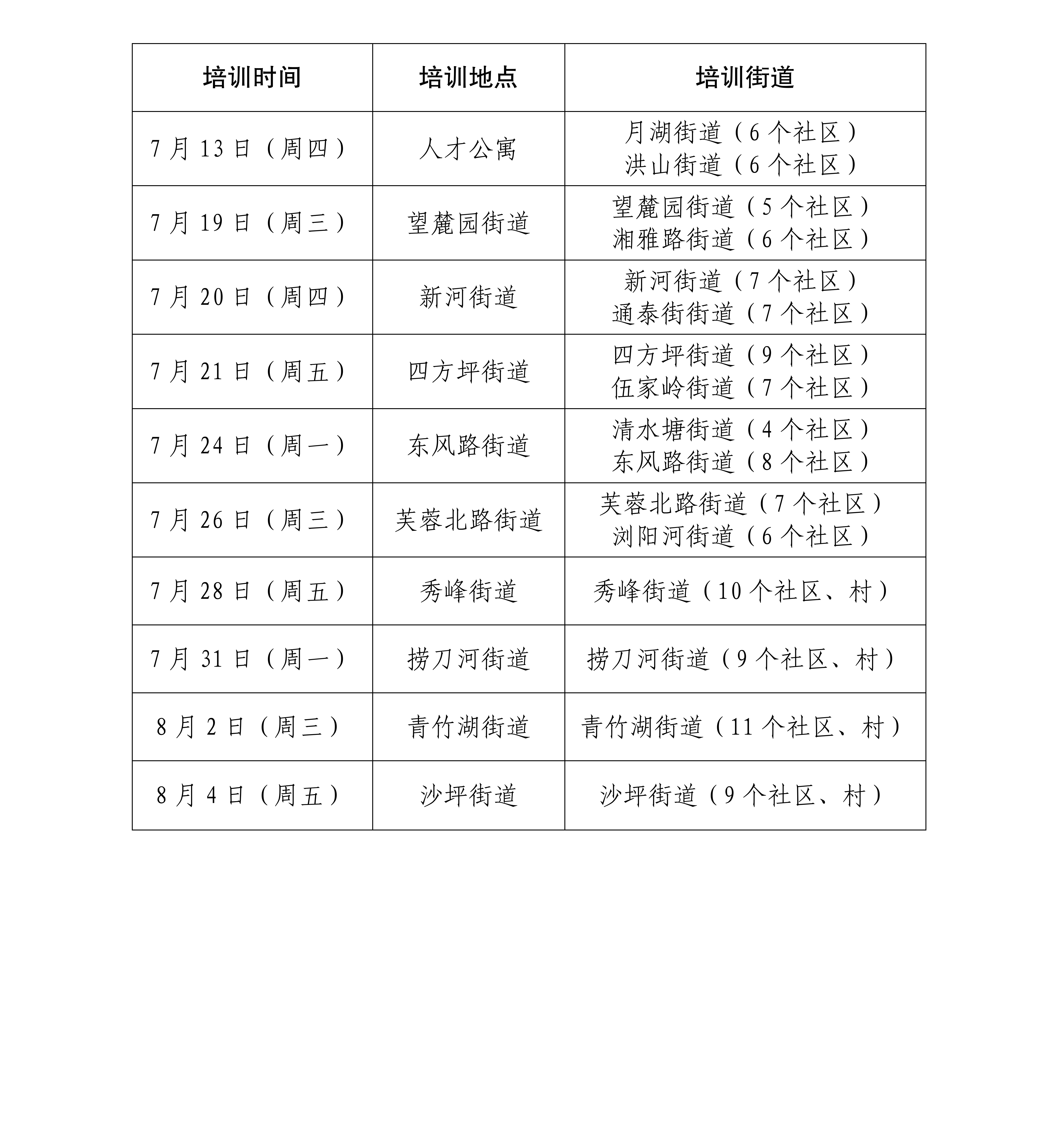 网格化管理工作“走下去”培训时间表